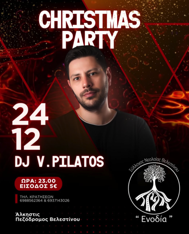 Παραμονή Χριστουγέννων, Τετάρτη 24 Δεκεμβρίου, ο Σύλλογος Νεολαίας Βελεστίνου διοργανώνει ένα ζεστό πάρτυ στο κατάστημα "Αλκηστις" με Dj τον Βασίλη Πιλάτο!