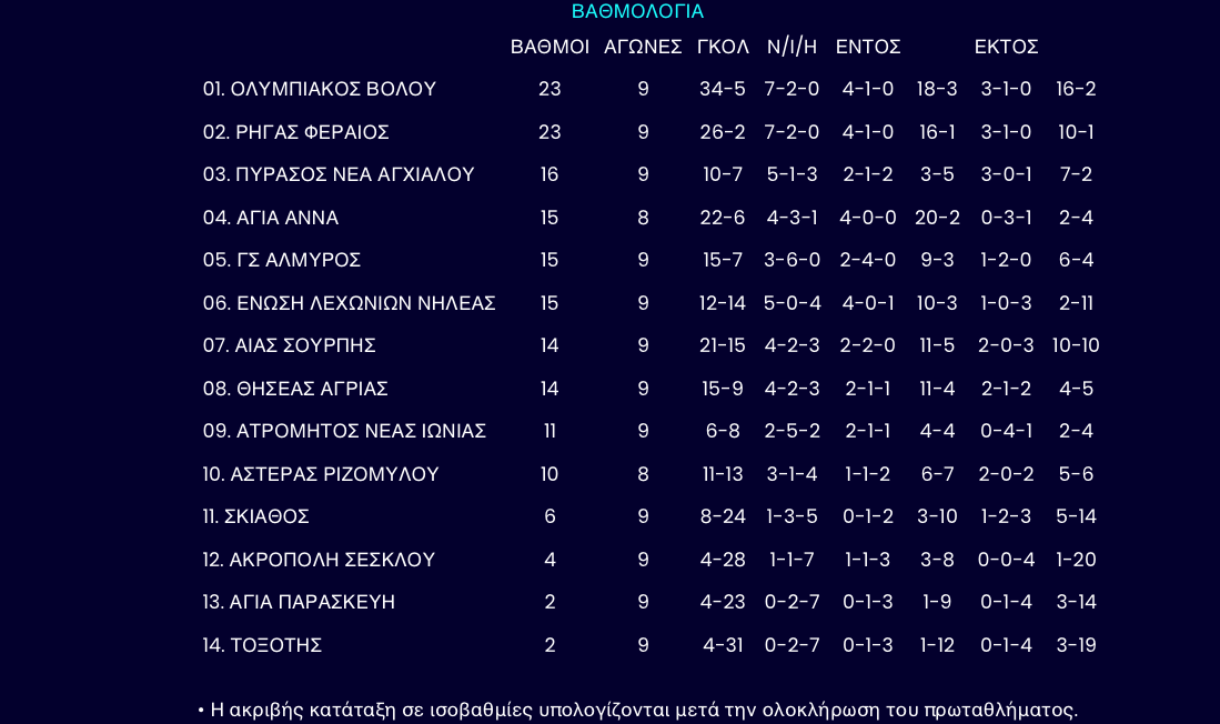 Α` ΕΠΣΘ - 9η αγωνιστική