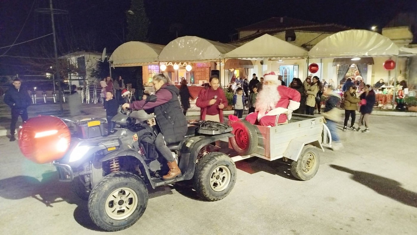 Όπως αναφέρει το kanalianews.gr από το οποίο προέρχονται και οι φωτογραφίες, το αποκορύφωμα της βραδιάς ήταν η άφιξη του Άη Βασίλη, ο οποίος έκανε την εμφάνισή του με έναν διαφορετικό και θεαματικό τρόπο, επάνω σε τετρακίνητη γουρούνα, κερδίζοντας το θερμό χειροκρότημα του κόσμου και χαρίζοντας χαμόγελα στα παιδιά.