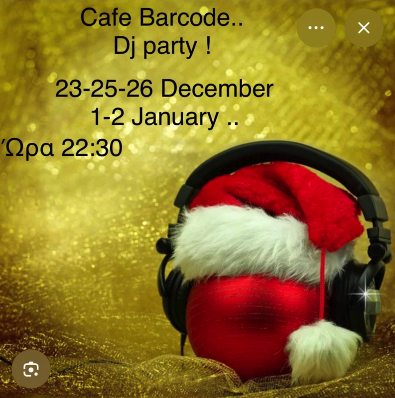 Τις μέρες των γιορτών συντονιστείτε στο Cafe Barcode στον πεζόδρομο Βελεστίνου για Dj Party και Greek Nights με ξέφρενη διασκέδαση μέχρι το πρωί!