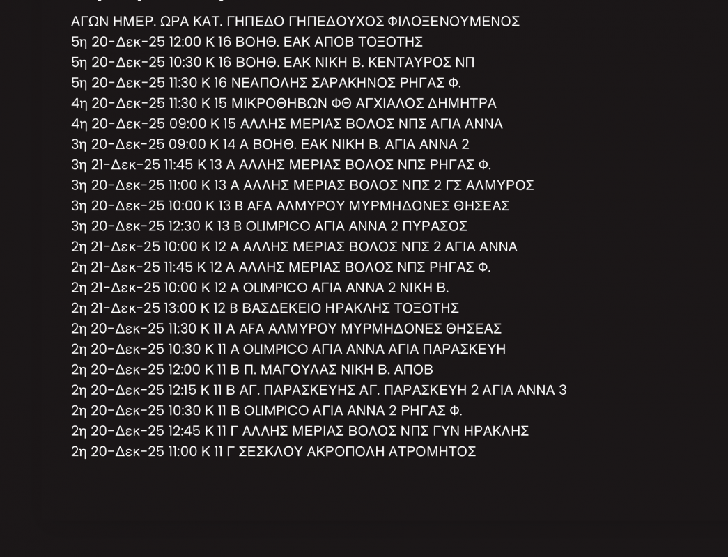 Δείτε αναλυτικά την δράση στα τμήματα υποδομών με την ΕΠΣ Θεσσαλίας να ανακοινώνει τη διεξαγωγή των αγώνων για το ερχόμενο Σαββατοκύριακο (20-21/12).