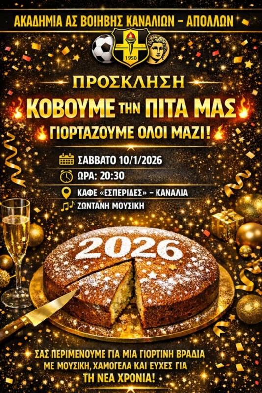 Κοπή πίτας με ζωντανή μουσική για την ακαδημία του Απόλλωνα Καναλίων