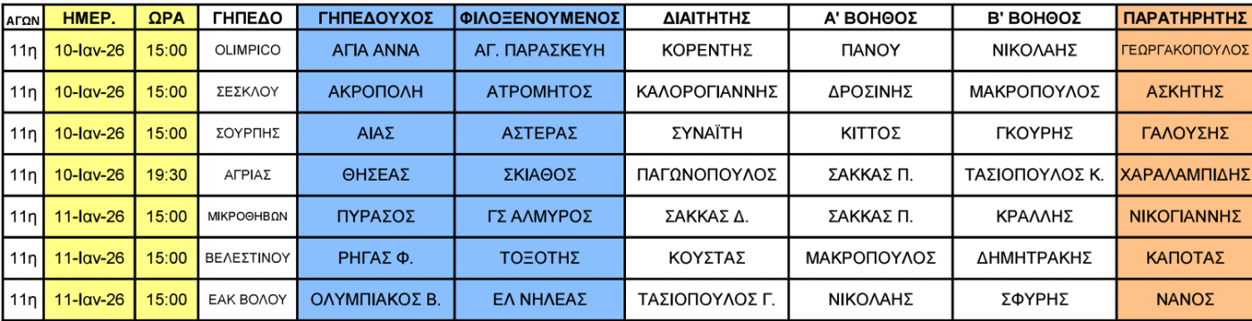 Α` ΕΠΣΘ - 11η αγωνιστική