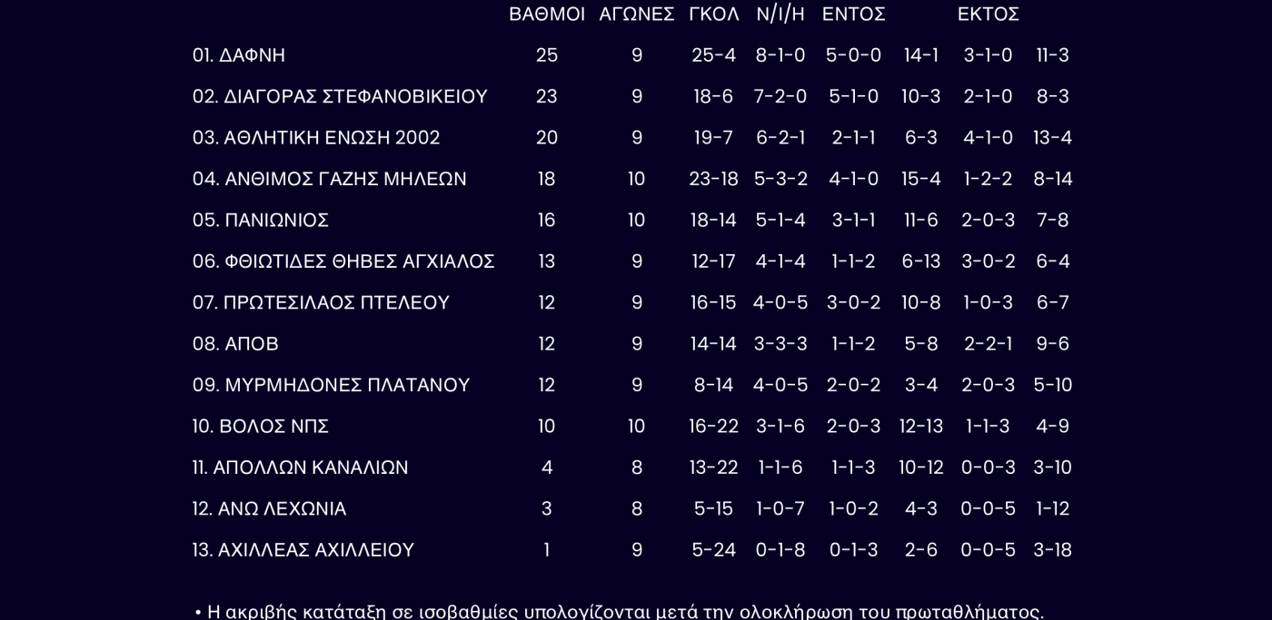 Απόλλων Καναλίων – Αχιλλέας Αχιλλείου 5-1 (12’, 49’, 54’ Κωστής, 19’ Σκοπιανός, 67’ Καλαμίδας-81’ Παναγιώτου)