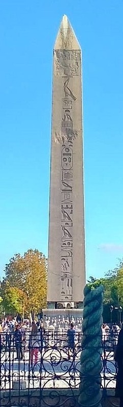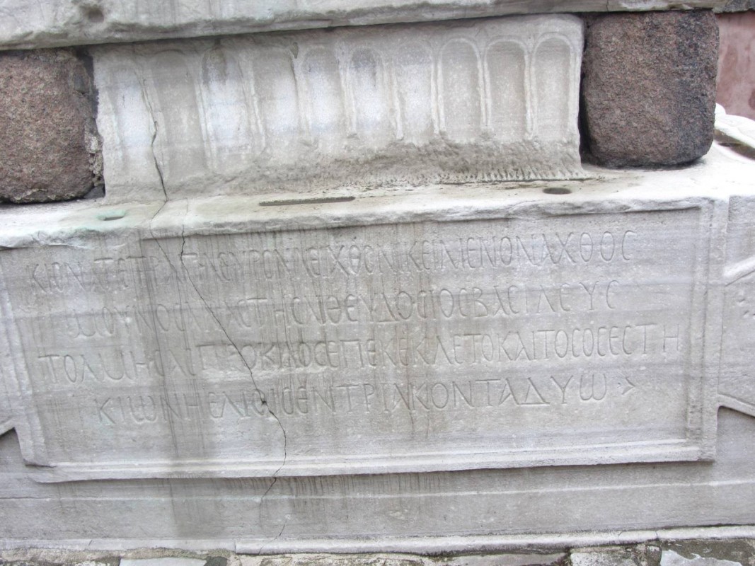 Επί πλέον, στον χώρο της Κωνσταντινουπόλεως, ο Ρήγας σημειώνει την Αγία Σοφία, το Πατριαρχείο το παλάτι του Μεγάλου Κωνσταντίνου και του Βελισσαρίου. Ακόμη, σημειώνει, και αυτό έχει ενδιαφέρον, την επιγραφή που υπάρχει στον κίονα, τον οβελίσκο του Μεγάλου Θεοδοσίου, που ωστόσο οθωμανικά τον αποκαλεί «Δικιλί τασί» αντί κίονα, κολώνα. Η επιγραφή στη βάση του οβελίσκου του Μεγάλου Θεοδοσίου λέει: «Κίονα τετράπλευρον αεί χθόνι κείμενον άχθος / μούνος αναστήσαι Θεοδόσιος βασιλεύς».