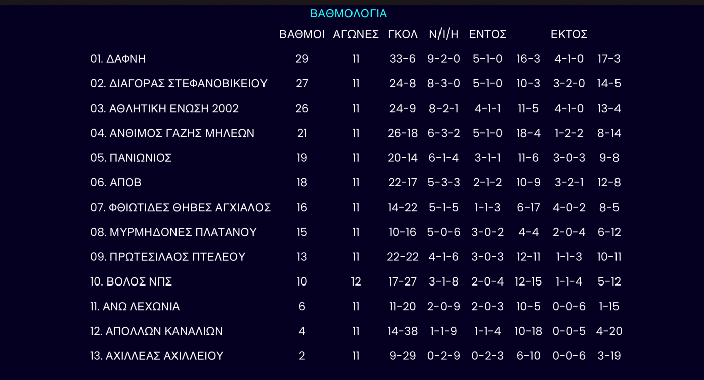 Το πρόγραμμα της 11ης αγωνιστικής στην Γ` ΕΠΣΘ
