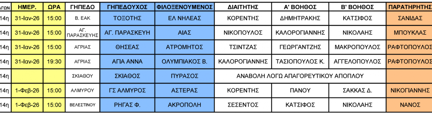 Α` ΕΠΣΘ - 14η αγωνιστική