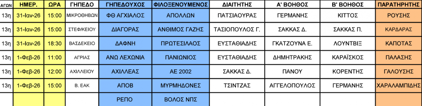 Β` ΕΠΣΘ - 13η αγωνιστική