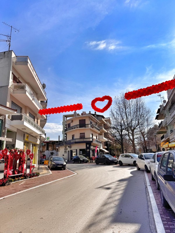 Ενόψει της εορτής του Αγίου Βαλεντίνου στις 14 Φεβρουαρίου και της μέρας Αγάπης και Έρωτα για τους Ερωτευμένους, το ανθοπωλείο Ανθούριο τοποθέτησε και φέτος μία καρδιά από μπαλόνια στην κεντρική οδό Ρήγα Φεραίου του Βελεστίνου.