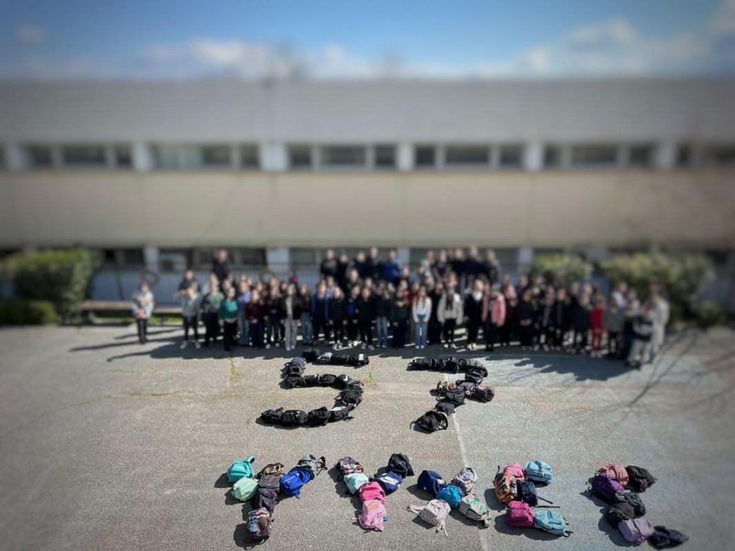 Δρώμενο-φόρος τιμης στις 57 ψυχές που χάθηκαν στο σιδηροδρομικό δυστύχημα των Τεμπών από το Γυμνάσιο Βελεστίνου.