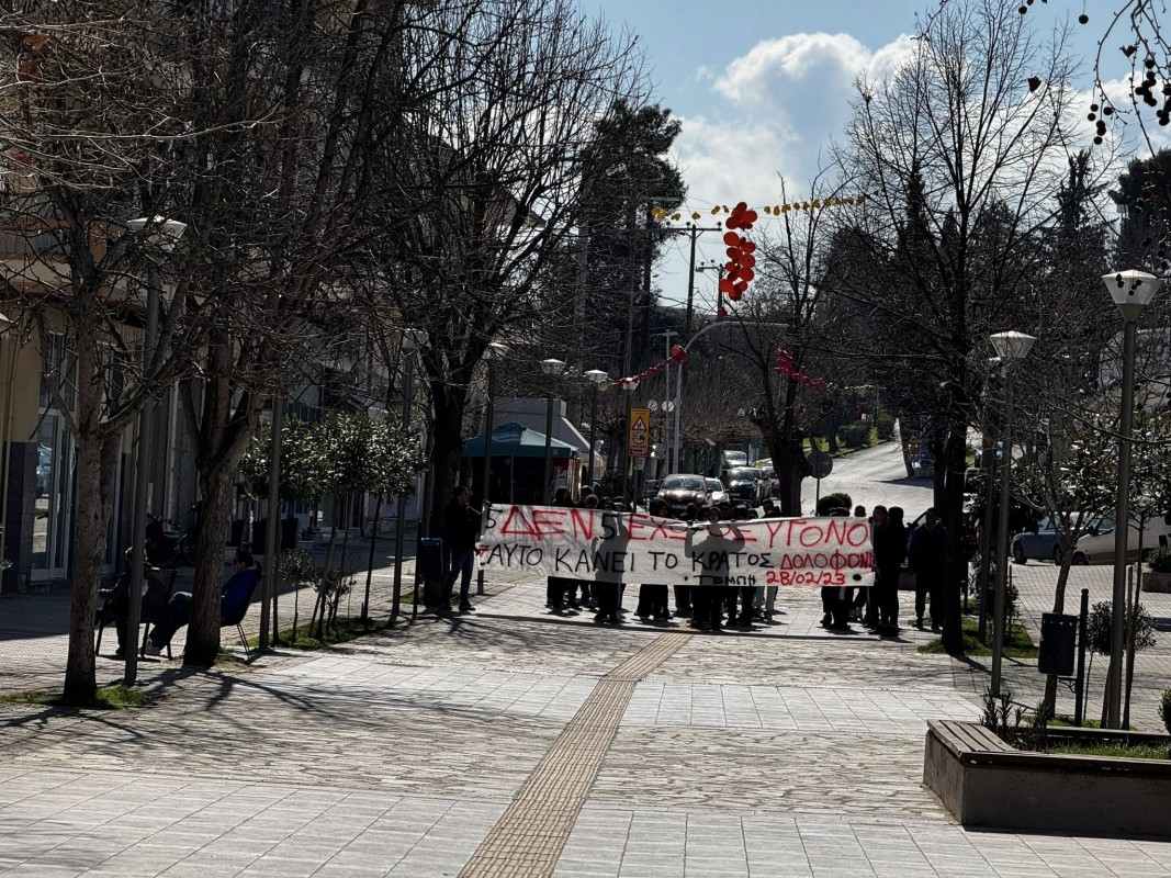 Πορεία με πανό και συνθήματα, τρία χρόνια μετά τη σιδηροδρομική τραγωδία των Τεμπών, πραγματοποίησαν μαθητές από το Πρότυπο ΕΠΑΛ Βελεστίνου το μεσημέρι της Παρασκευής.