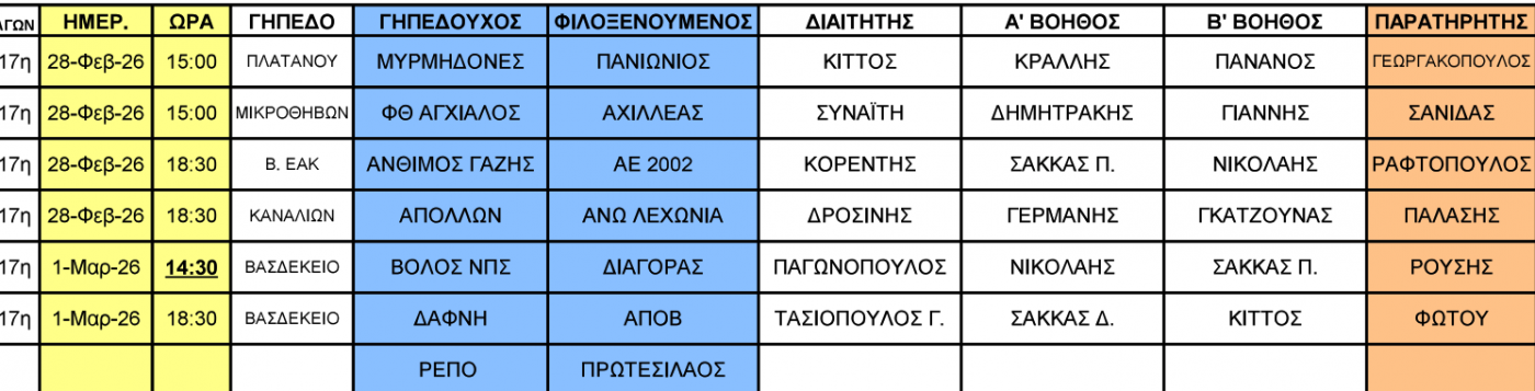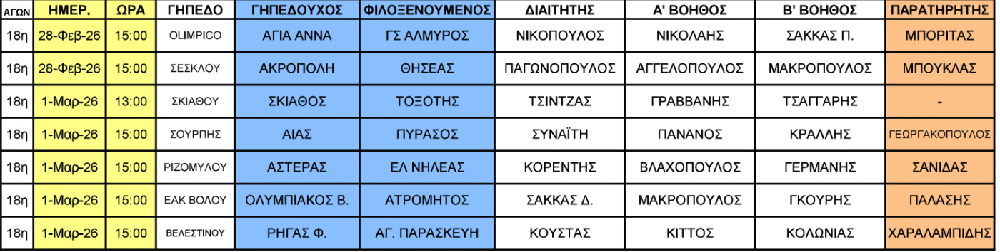 Δείτε τους ορισμούς των διαιτητών για τους αγώνες (28/1-1/3) στις τρεις τοπικές κατηγορίες της ΕΠΣ Θεσσαλίας.