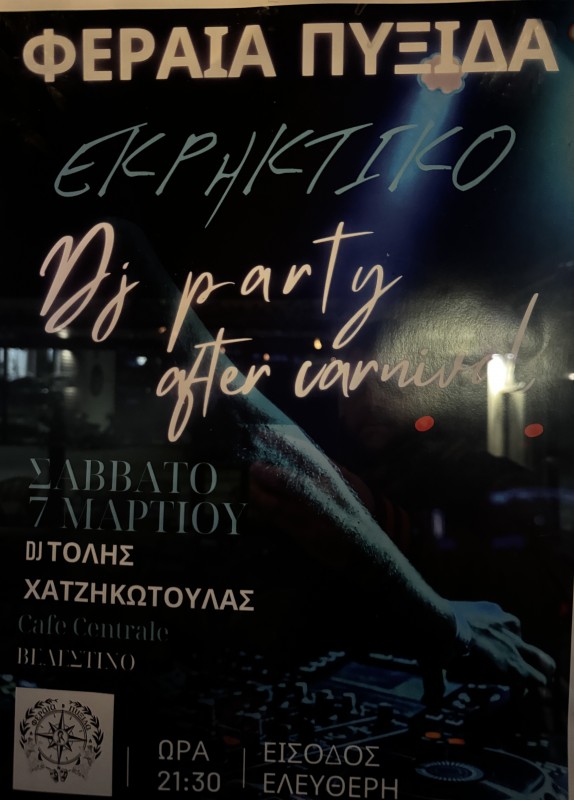 Το ερχόμενο Σάββατο 7 Μαρτίου η "Φεραία Πυξίδα" σας καλεί σε ένα εκρηκτικό after Carnival Party στο Cafe Centrale, στον πεζόδρομο Βελεστίνου!