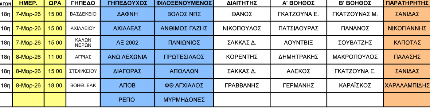 Σεσέντος με βοηθούς τους Καλορογιάννη και Σφυρή στον αγώνα του Ρήγα με την Αγία Άννα στην Άγρια - Τασιόπουλος στο Τοξότης - Ολυμπιακός Βόλου