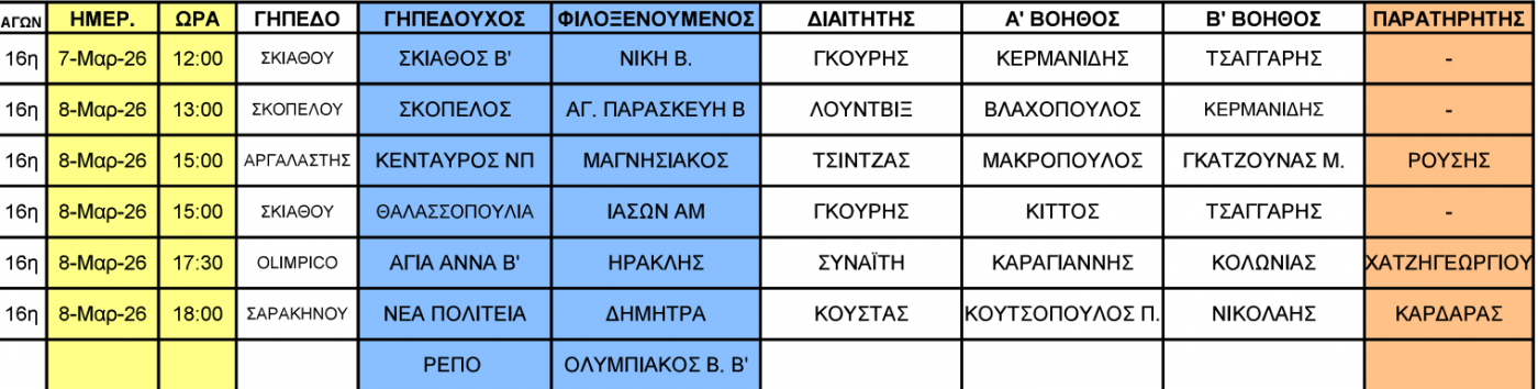 Γ` ΕΠΣΘ - 16η αγωνιστική