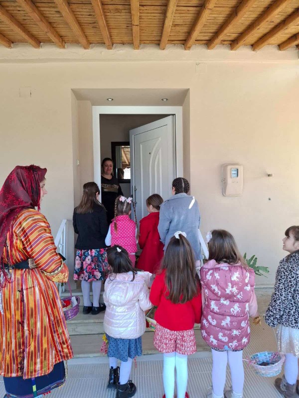 Οι νοικοκυρές που καλωσόριζαν τα νεαρά κορίτσια δίναν ως κέρασμα σε αυτά αυγά, που βάζανε στα καλαθάκια τους ή κάποια κεράσματα που είχαν στο σπίτι τους.