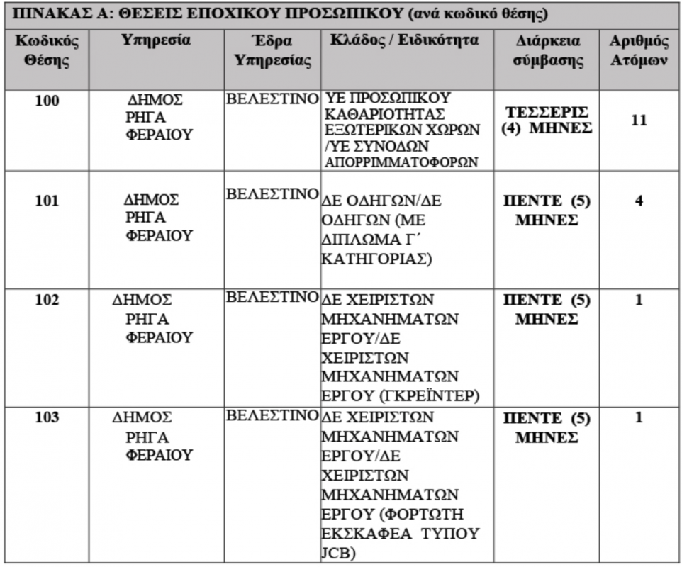 Την πρόσληψη 17 ατόμων με σύμβαση εργασίας στο πλαίσιο της πυρασφάλειας-πυροπροστασίας ανακοίνωσε ο Δήμος Ρήγα Φεραίου