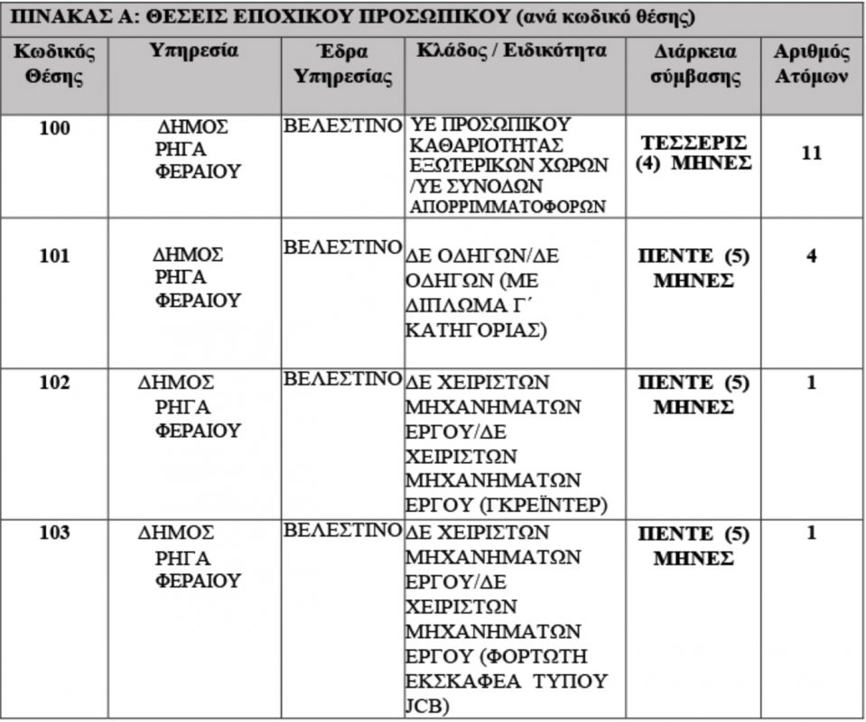 Πρόσληψη 17 ατόμων με σύμβαση εργασίας στο πλαίσιο της πυρασφάλειας-προστασίας ανακοίνωσε ο Δήμος Ρήγα Φεραίου.